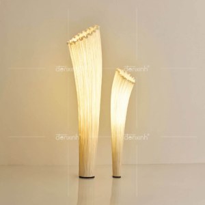 Đèn đứng vải cuốn lụa nhăn chữ nhật bo góc